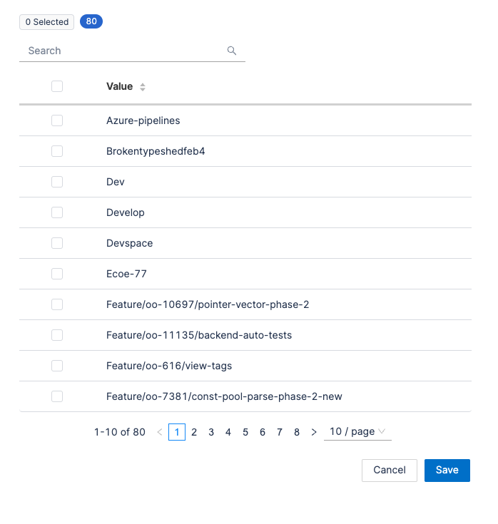 - Pull Requests from Branches: Define values that the source branches for pull requests should start with or contain.