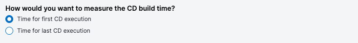 - Time for First CD Execution: Captures the duration from when the first deployment pipeline starts execution to its completion.